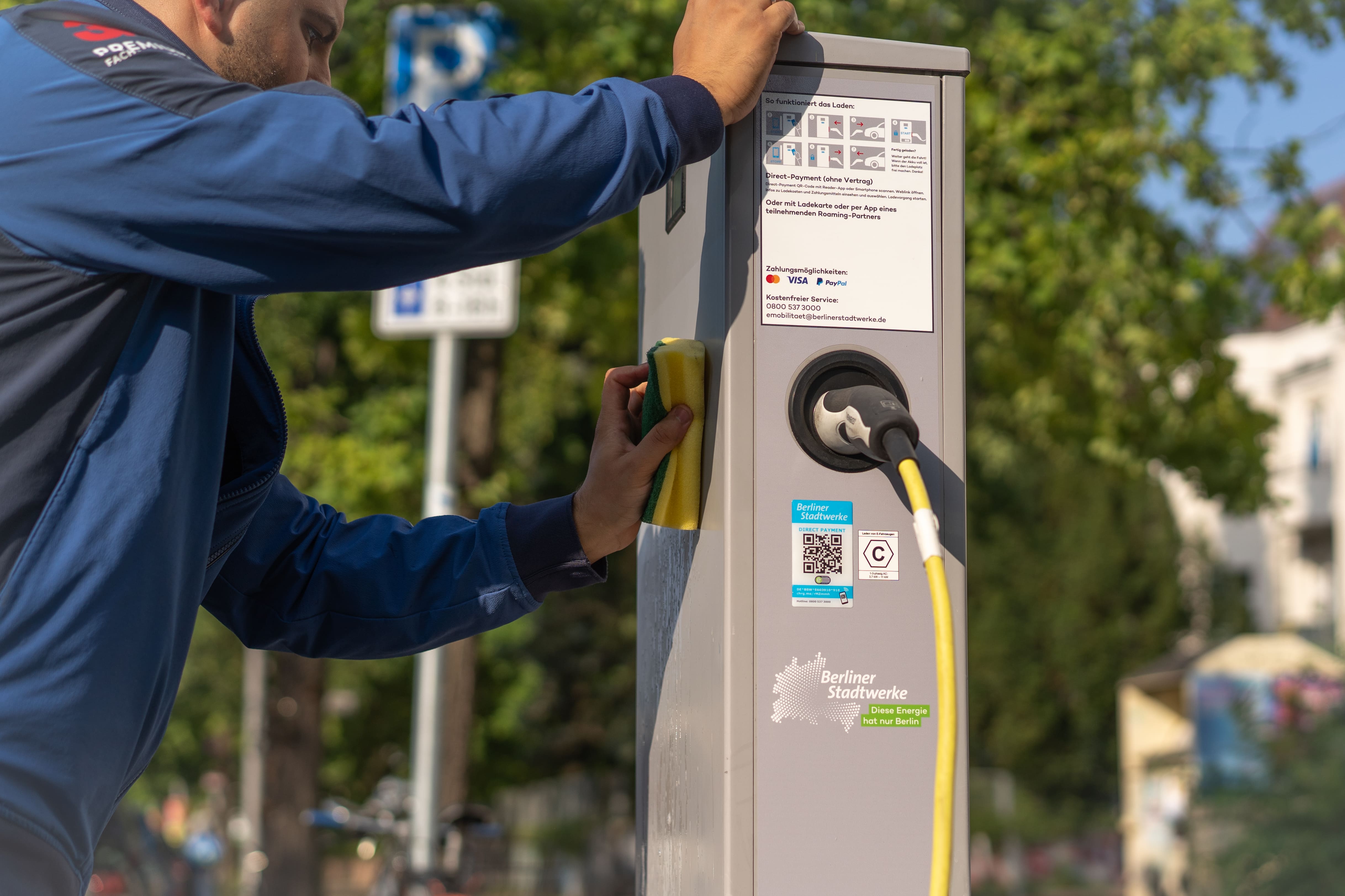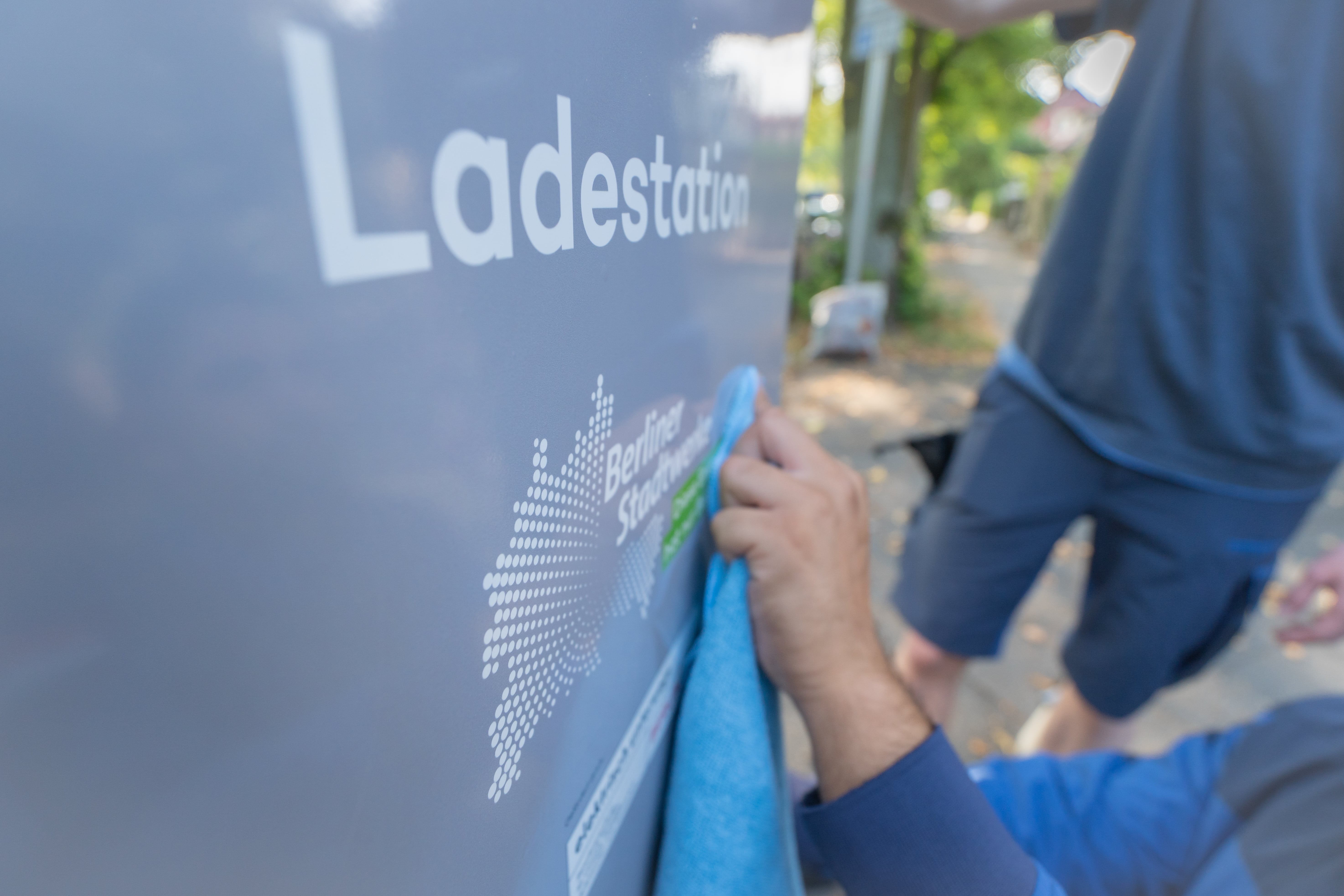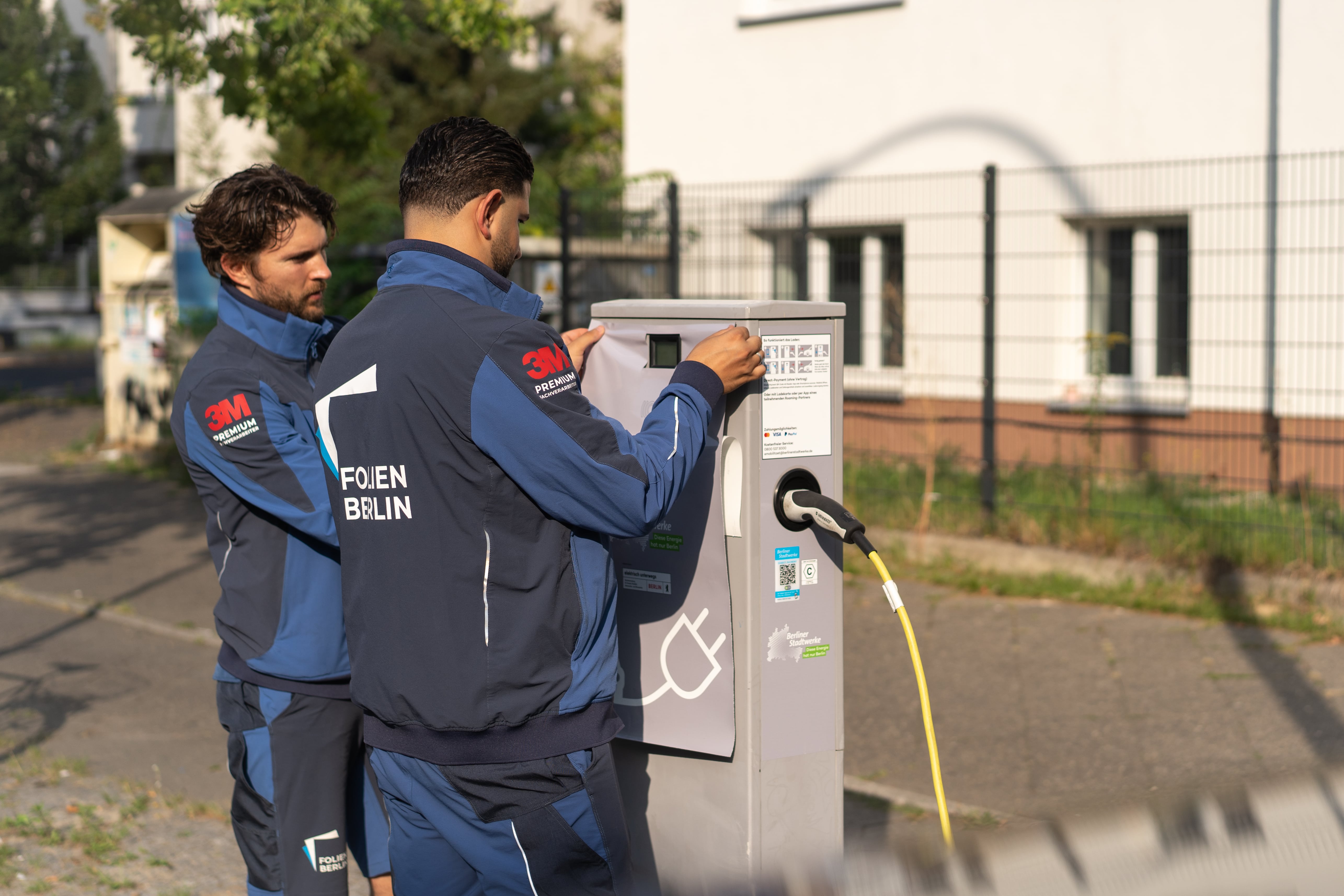 Damit den Nutzern der E-Ladesäulen ein problemloser Ladevorgang gewährleistet werden kann, geben wir unser Bestes. Nach dem Bekleben und etwaigen Zuschneiden der Folie reinigen wir die