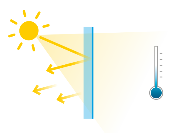 Im Sommer ist die Funktion der Folie, die innen am Fenster angebracht wird, genau umgekehrt. DankSonnenschutz bleibt die Sommerhitze draußen, indem die hitzeerzeugenden Infrarotstrahlen der Sonne an der folierten Scheibe der Fenster zurückreflektiert werden. Gleichzeitig entweicht durch die Thermofolie nur ein geringer Teil der von Klimaanlagen erzeugten Kälte in die Außenumgebung. Klimaanlagen und Ventilatoren müssen nicht mehr im Dauerbetrieb laufen – die Energiekosten sinken.