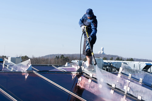 Wir reinigen folierte Oberflächen wie Glasfassaden, Fensterscheiben, Aufzüge, Treppenhäuser und vieles mehr mit hochwertigen, sanften Reinigungsmitteln. Dabei verzichten wir auf Scheuerstoffe, aggressive Reiniger und starke Lösungsmittel, um die Langlebigkeit Ihrer Fensterfolien zu erhalten. Bei besonders hartnäckigen Verschmutzungen nutzen wir Spezialreiniger, der die Performance Ihrer Folien nicht beeinträchtigt.